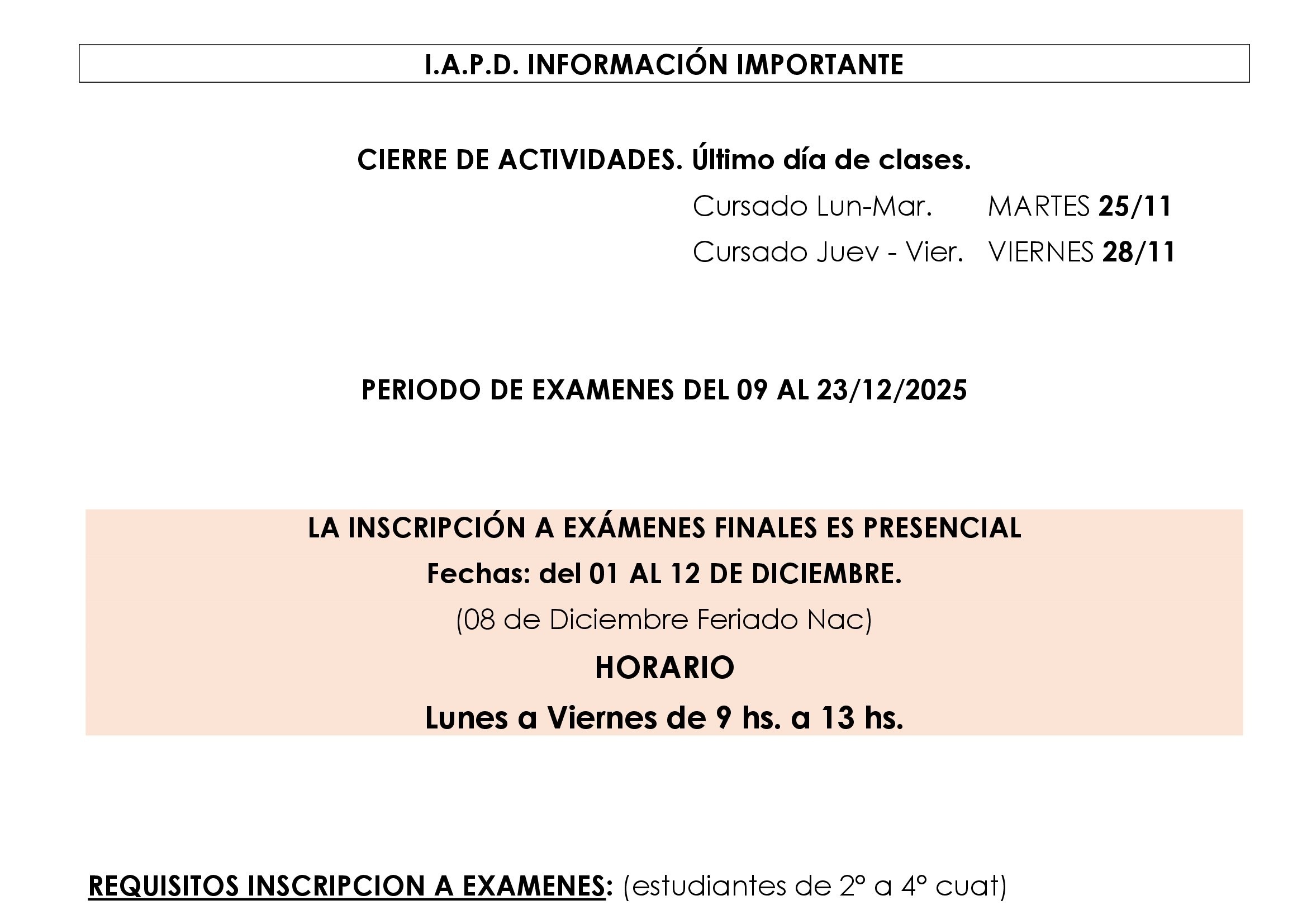 En este apartado encontrara toda la informacion relativa a examenes finales de diciembre 2025.
