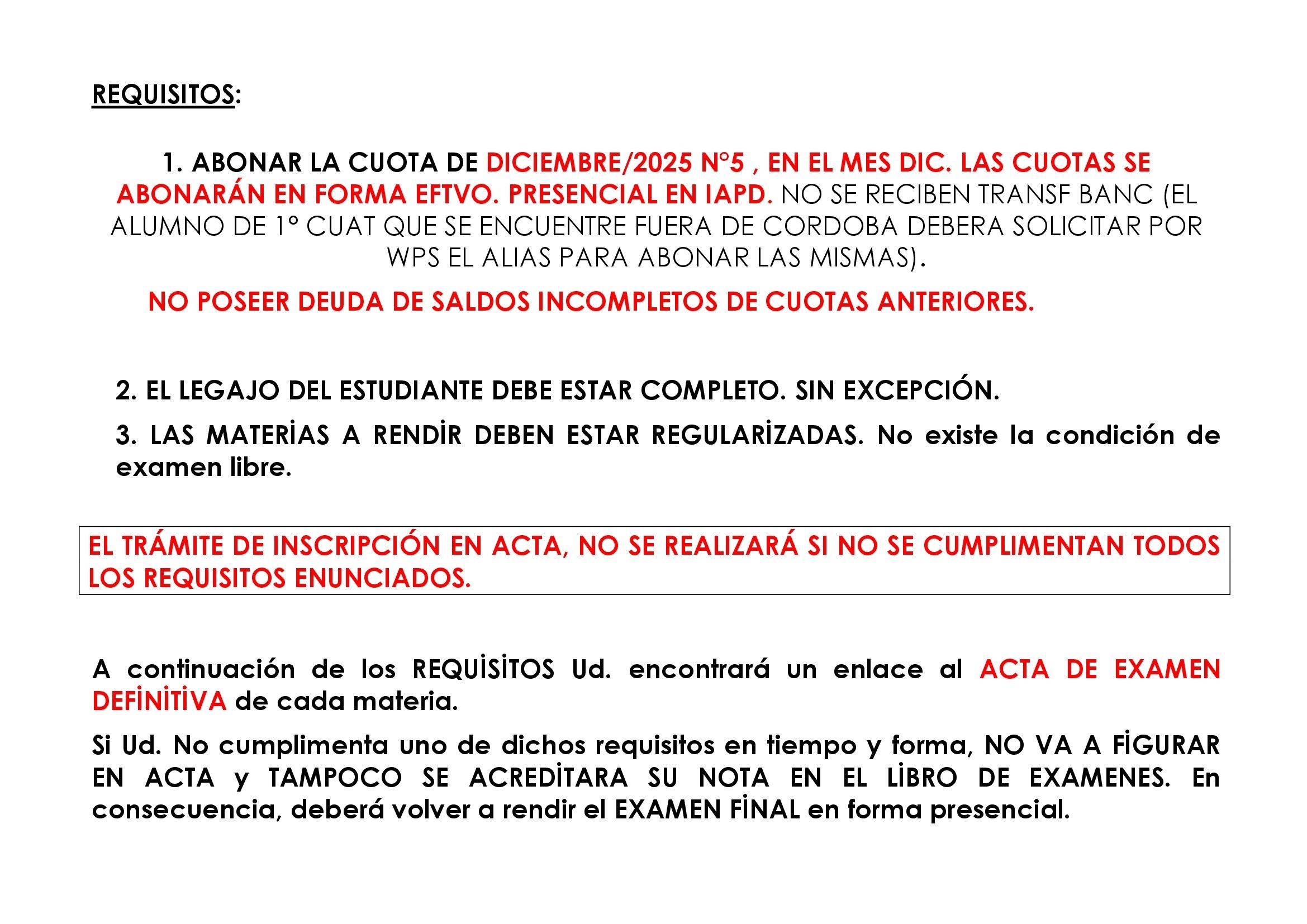 Ud. será incorporado en Acta si cumple con los REQUİSİTOS solicitados