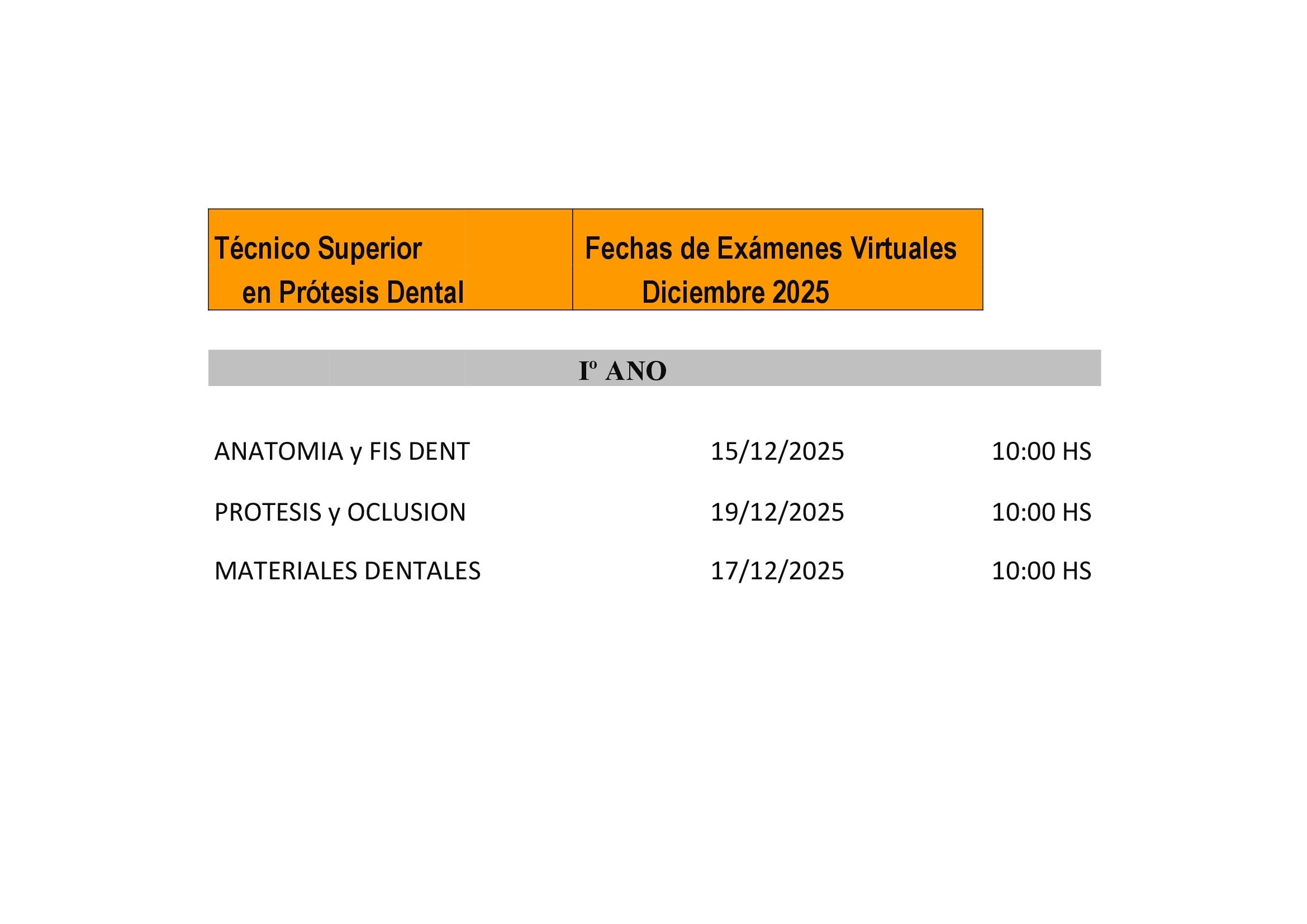 Los estudiantes de primer cuatrimestre cursado virtual deben remitirse a EXAMENES VİRTUALES.